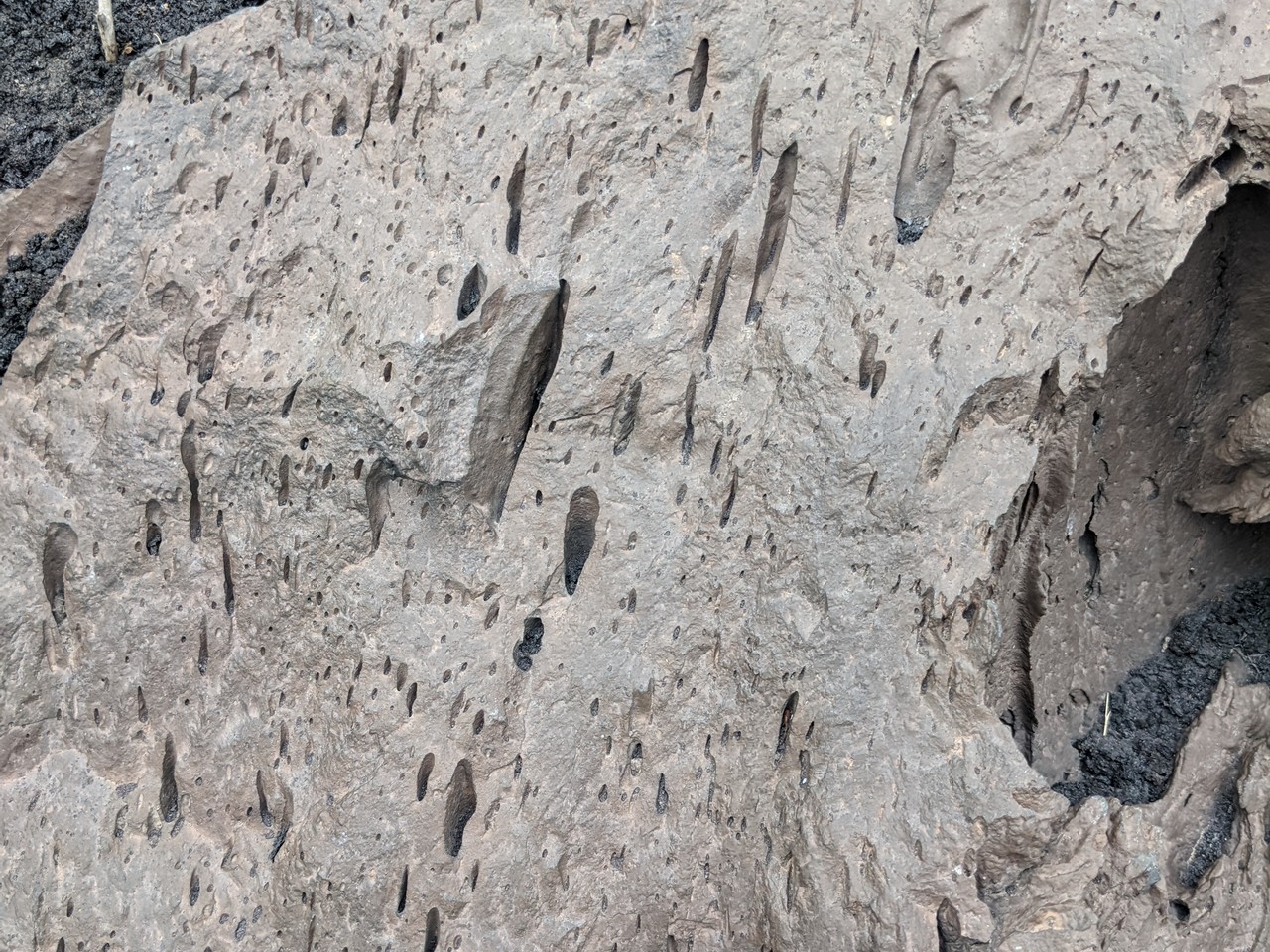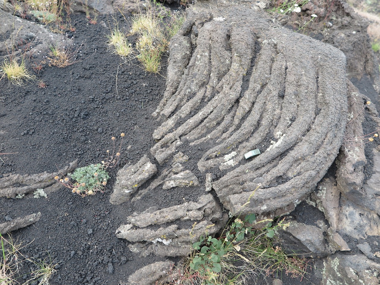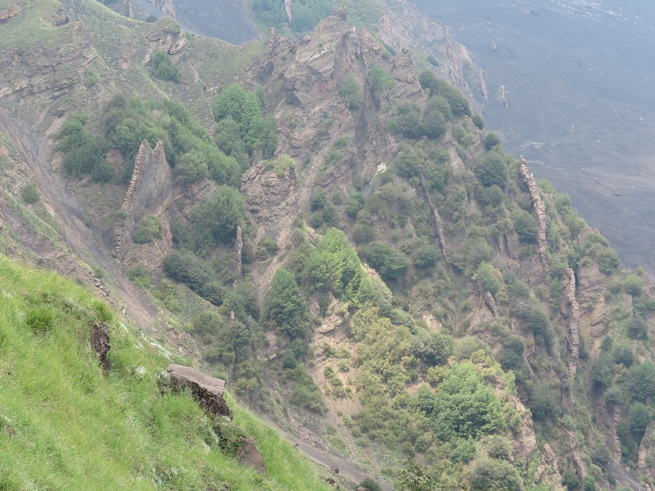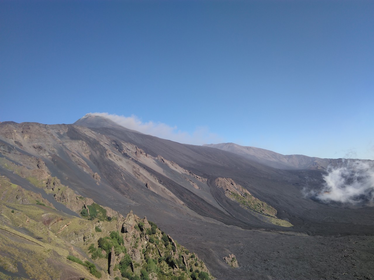 Valle del Bove sequence is a large depression with several rocky elevations taking place in between black tongues of lava flows. These are remnants of a complex of, at least, seven distinct volcanoes. Around 10 thousand years ago, a catastrophic collapse of the eastern flank of Mount Etna caused the formation of this valley, where part of the material moved in a form of debris flow towards the sea. The remnants of ancient volcanoes are characterized by stratified flanks at both sides of the valley. The chemical composition of the volcanic products is changing with time. The silica content increases in the more recent lava. There is also a progressive shift of the eruptive activity towards the northwest.