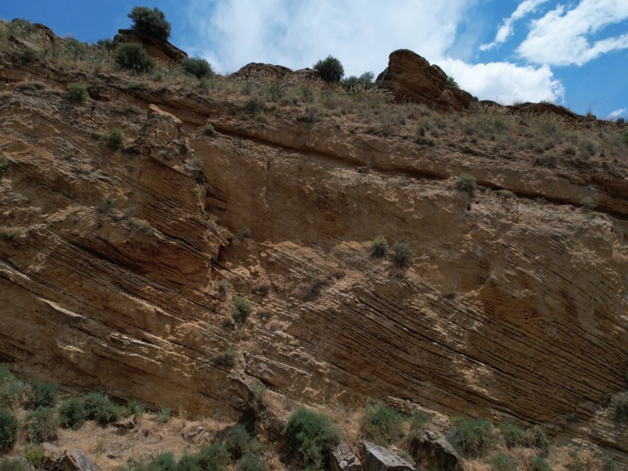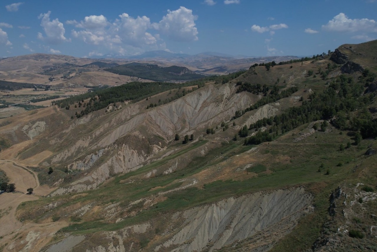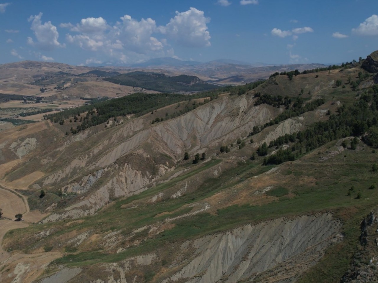 Mount Capodarso is the location with the best stratigraphic record of the late Miocene in Sicily, covering from the Tortonian stage at 11.6 Ma to the Piacenzian stage at 2.65 Ma. In this time frame, we can see all the changes that occurred in the Mediterranean Sea before, during and after the Messinian Salinity Crisis. We start in a marine slope made of fine terrigenous sediments, occasionally cut by sandy turbiditic flows. Then rapid changes caused a collapse of the normal marine conditions. The tectonic movement caused a limited inflow of new water at the Strait of Gibraltar and the basin firstly became anoxic and with greater evaporation, less and less water remained in the Mediterranean Sea. Under these conditions, evaporites were deposited and the microbial life that flourished here started to adapt to the high salinity and lack of oxygen, producing an anomalous sulfur concentration that has been of economic interest in the European mining industry between 1850 and 1983. Shortly after the reopening of the Gibraltar Strait, the reflooding restored the marine conditions to normal. Through subsequent tectonic evolution of the basin, we see a change from deep marine deposits to shallow sandy sediments.